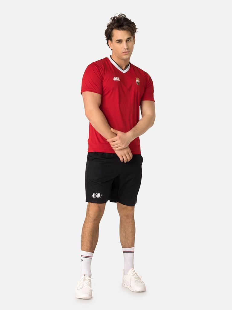 Tricou de majorete cu decolteu în V, elegant și cu aspect curat, din țesătură 100% poliester. Țesătură ușor de uscat și respirabilă pentru o purtare extrem de confortabilă. Are o creastă elegantă și branding pe piept, un steag pe mânecă și inscripții discrete HUNGARY pe spate.