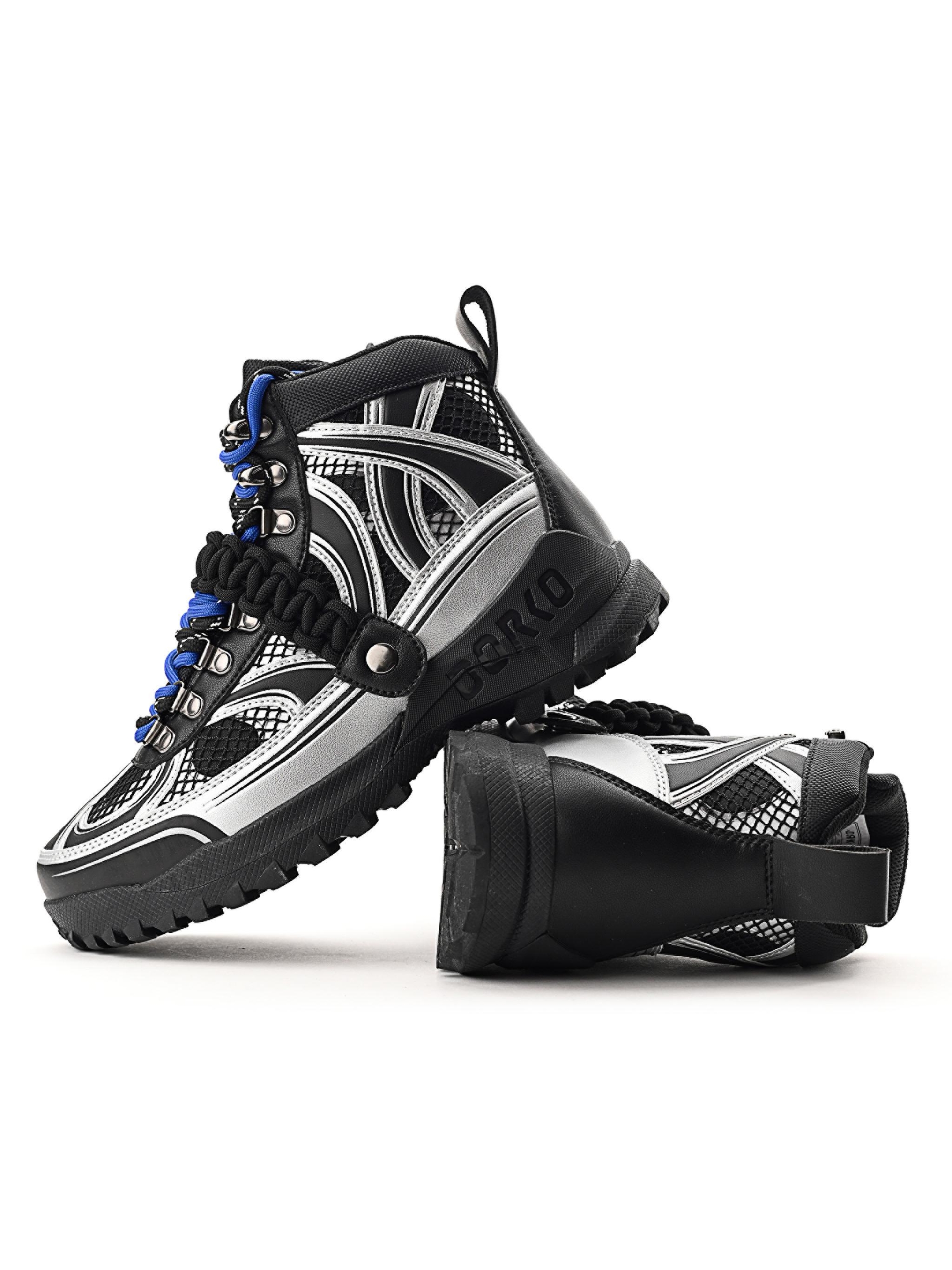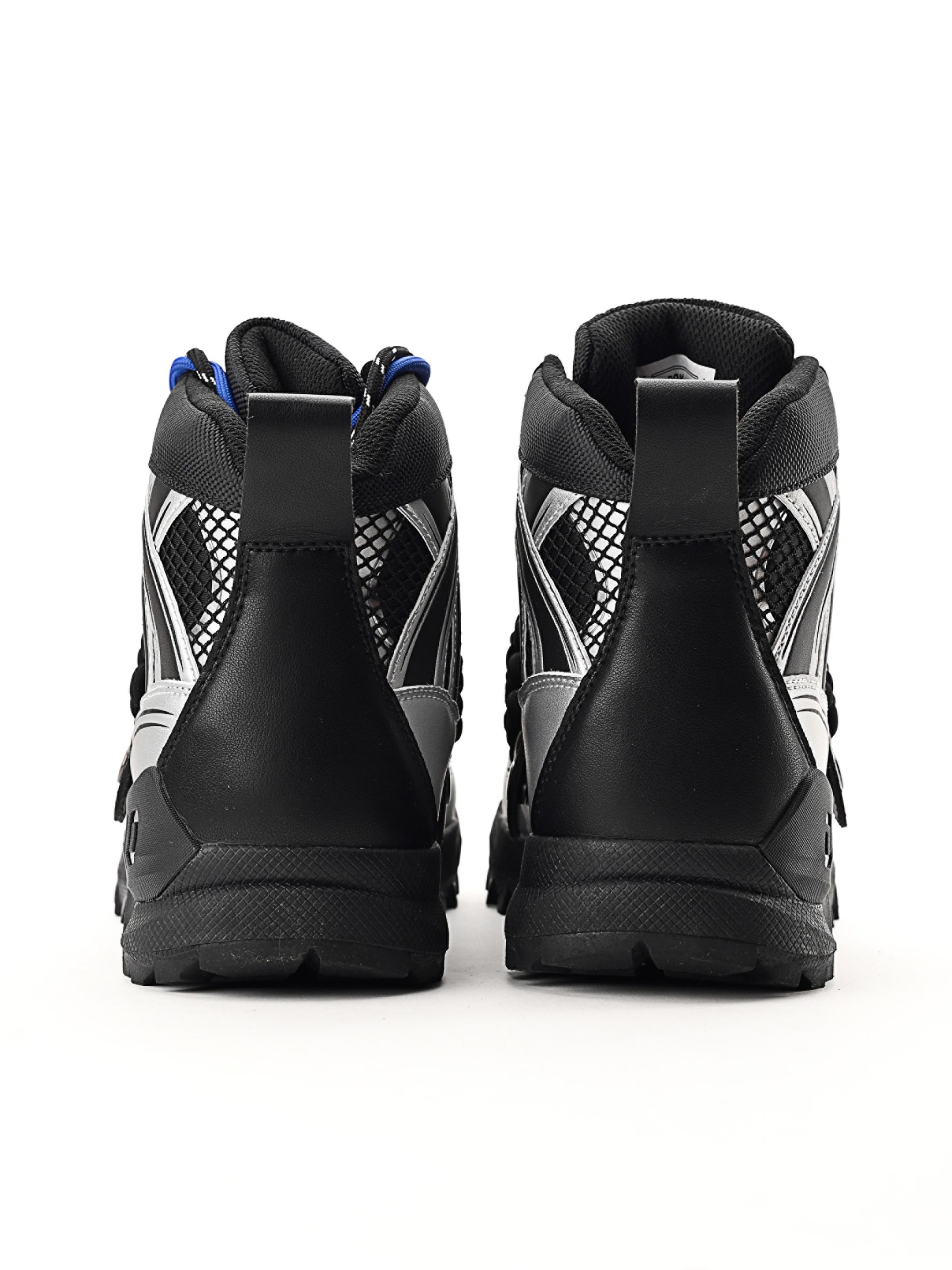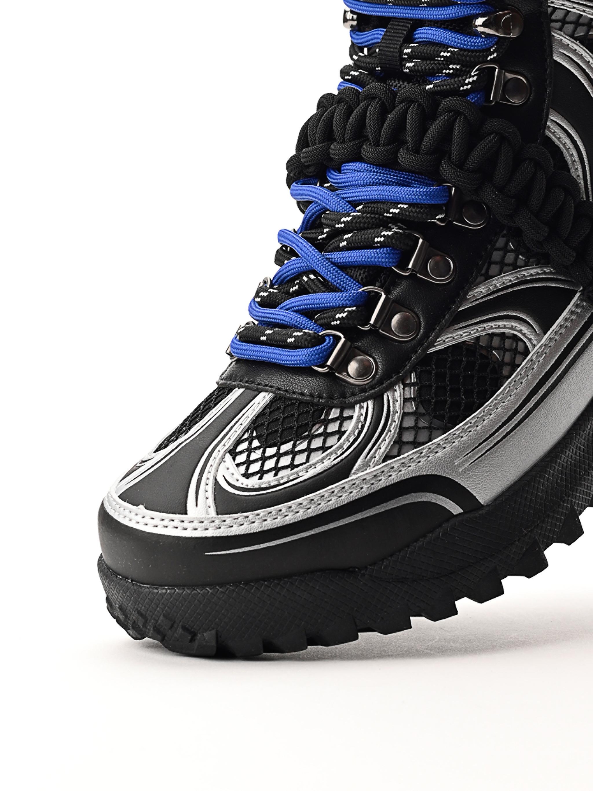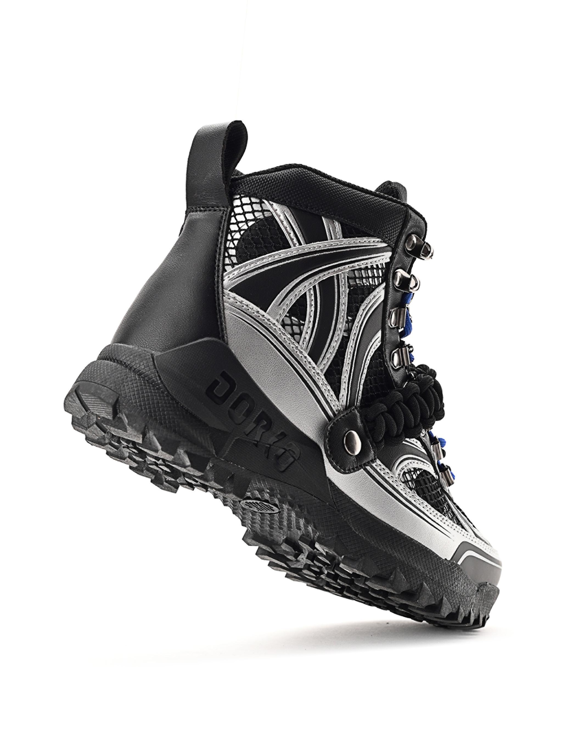 Partea superioară se remarcă prin forme fragmentate, detalii embosate și imprimate, completate de elemente metalice și de un logo amplasat cu gust, oferind bocancului un caracter cu adevărat unic.