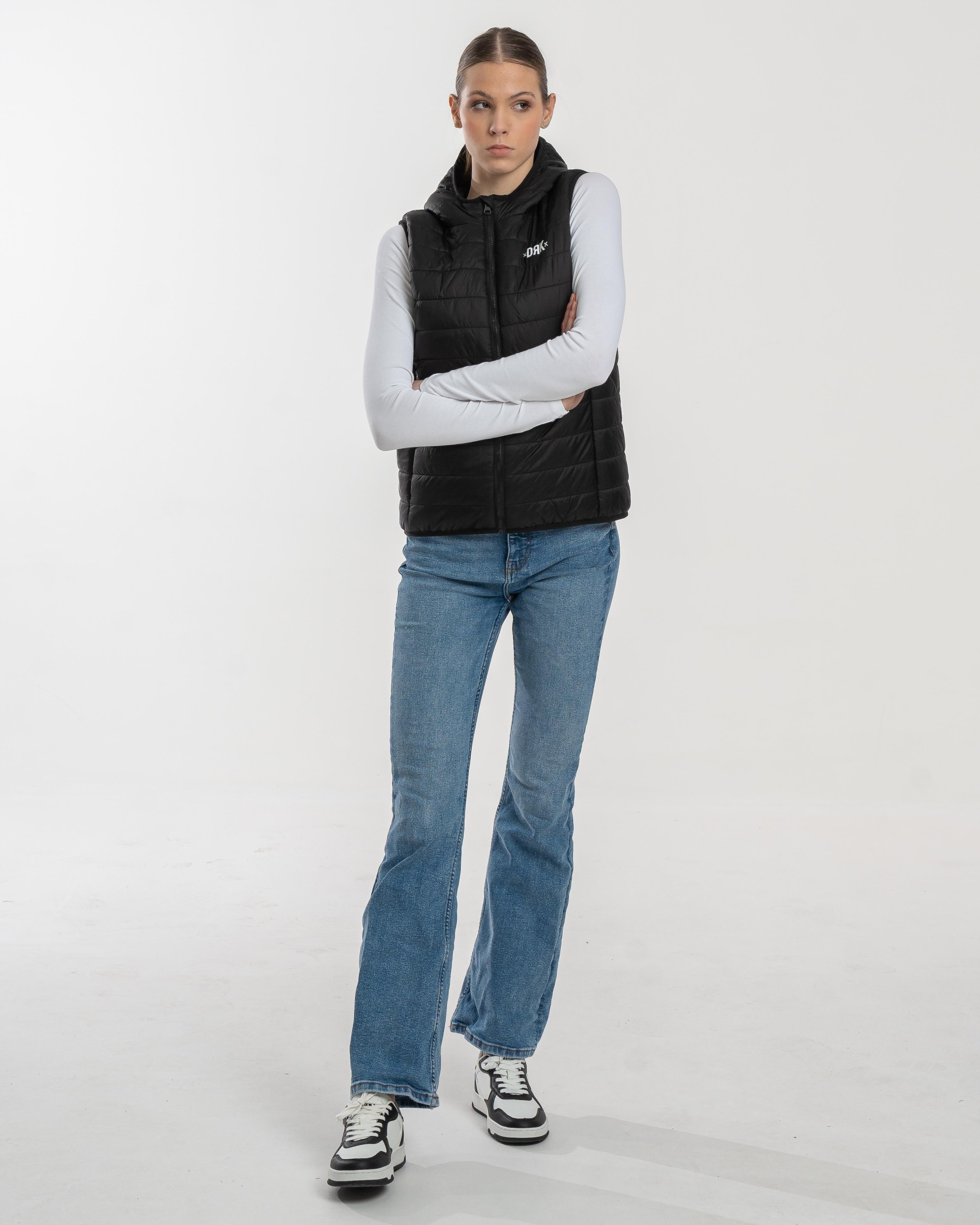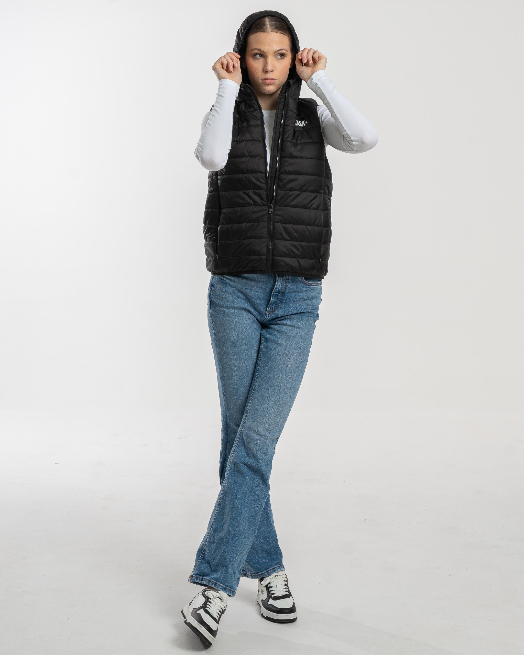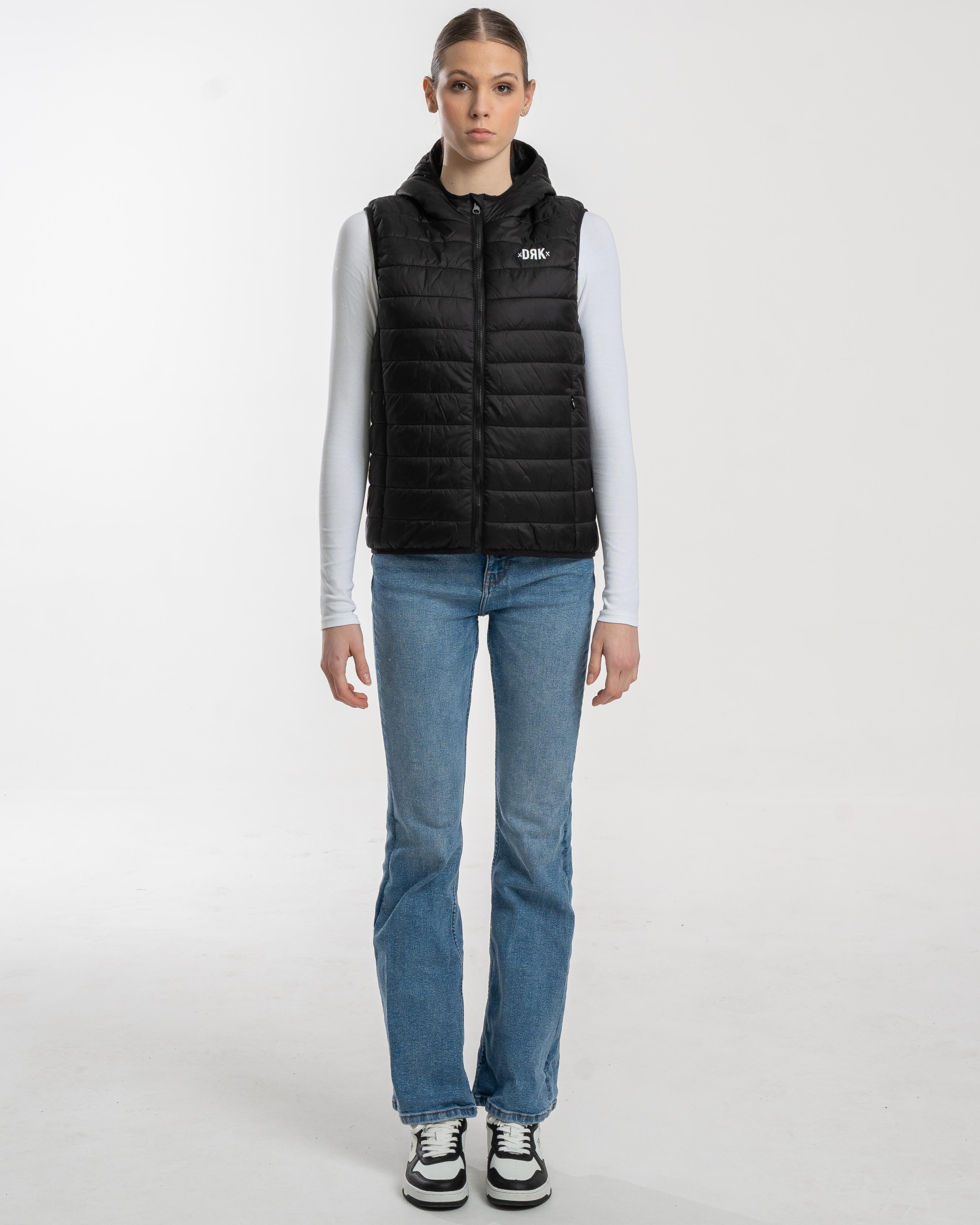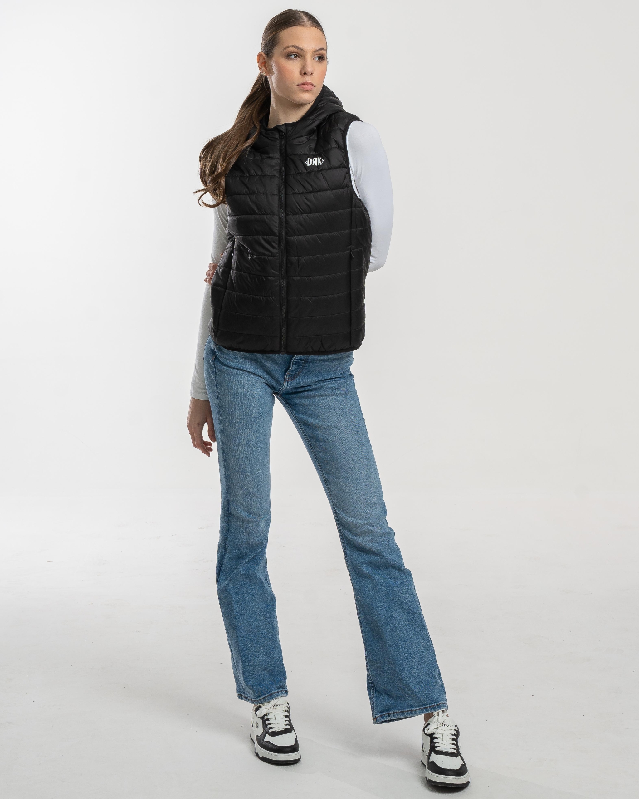 FLORIANA este o vestă ușoară, matlasată, creată pentru femei, care oferă un echilibru perfect între stil și funcționalitate în zilele răcoroase. Culoarea neagră, curată și versatilă, se potrivește cu orice ținută, iar închiderea cu fermoar și gluga practică adaugă un plus de confort. Croiala slim evidențiază silueta feminină, în timp ce logo-ul discret DRK de pe piept completează designul cu o notă modernă și sportivă.