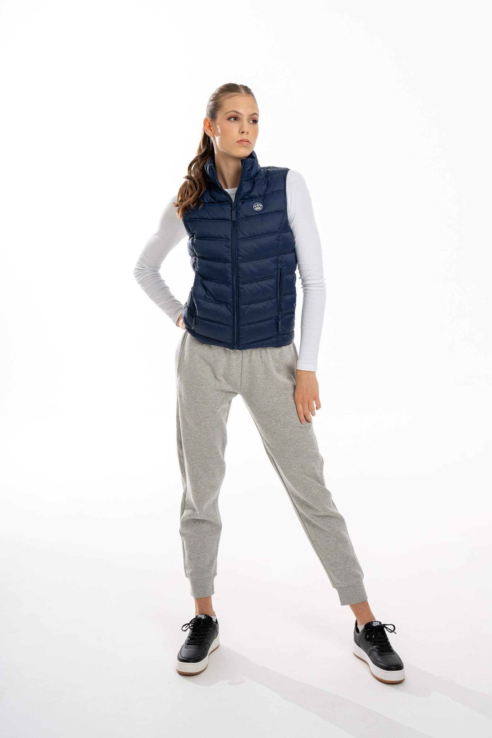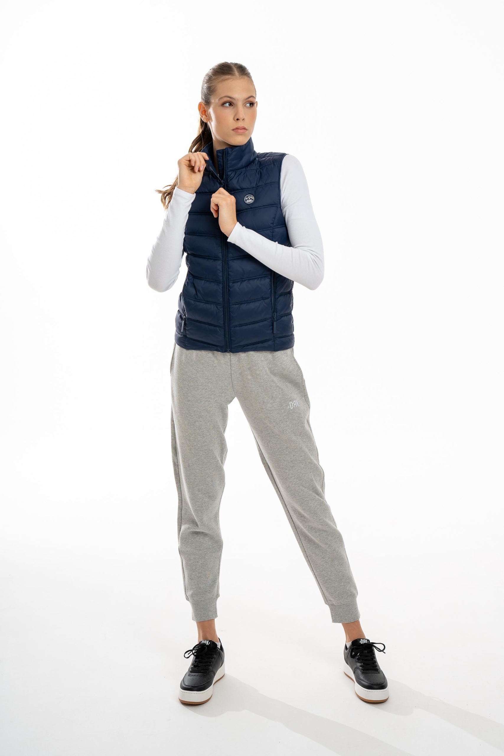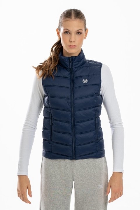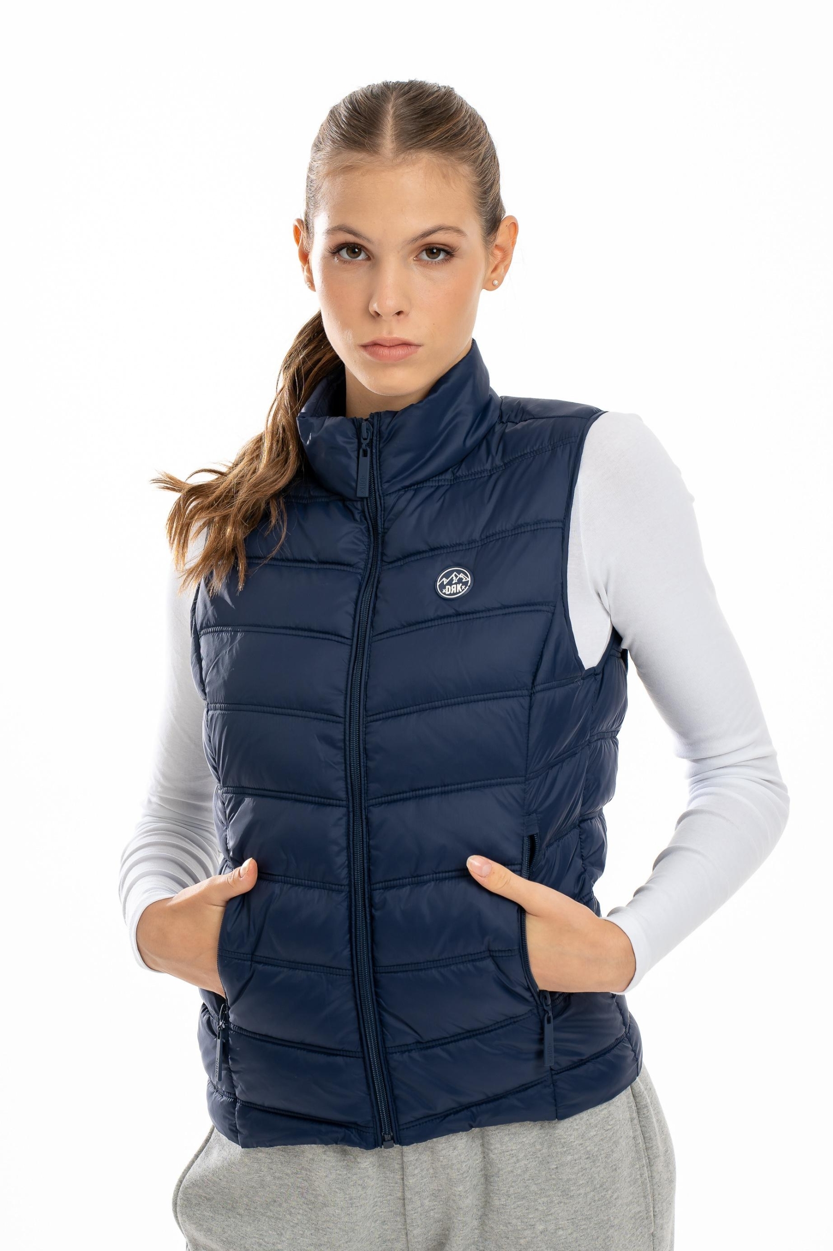 Vesta DRK KIMBERLY este o piesă rafinată, dar practică, ideală pentru sezonul de tranziție din toamnă. Modelul matlasat și designul curat, cu guler drept și fără glugă, îi oferă un aspect elegant și modern. Buzunarele cu fermoar adaugă funcționalitate, iar detaliile din patch de cauciuc îi conferă un caracter sportiv și contemporan. Fabricată din 100% poliester, este ușoară și confortabilă, perfectă pentru zilele mai răcoroase.