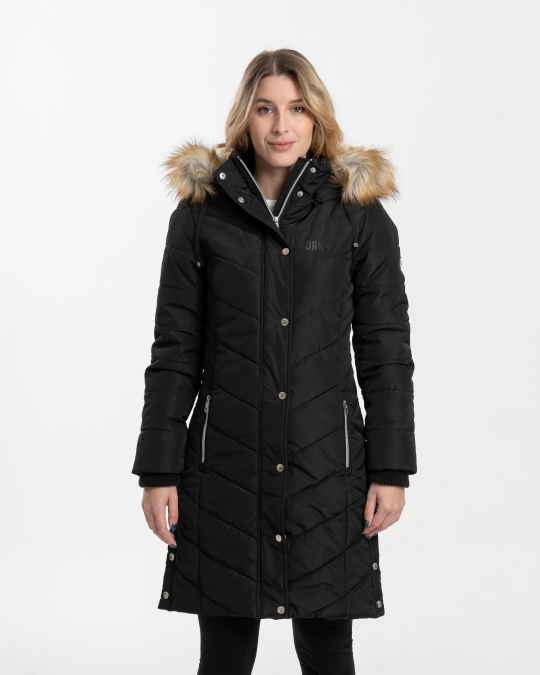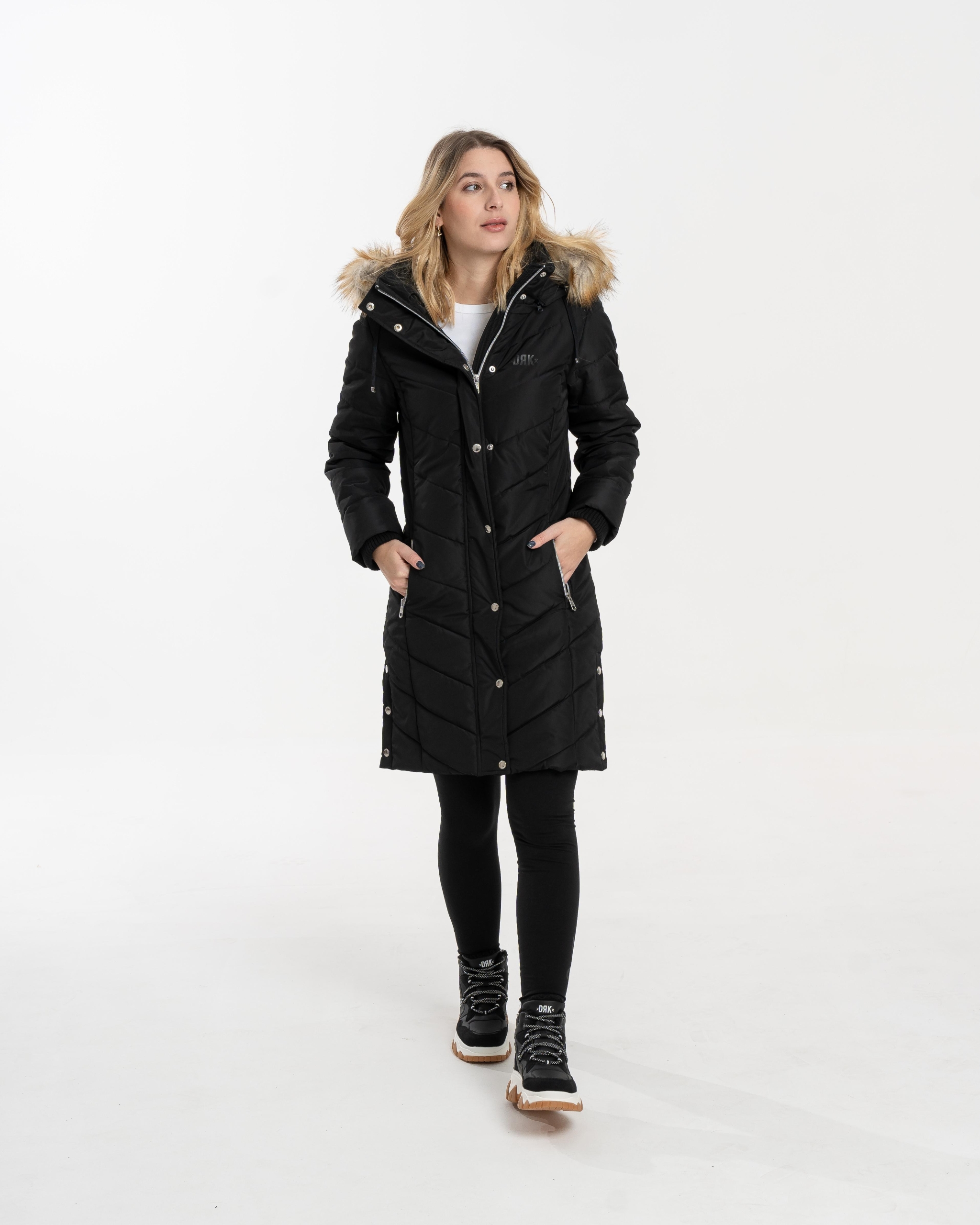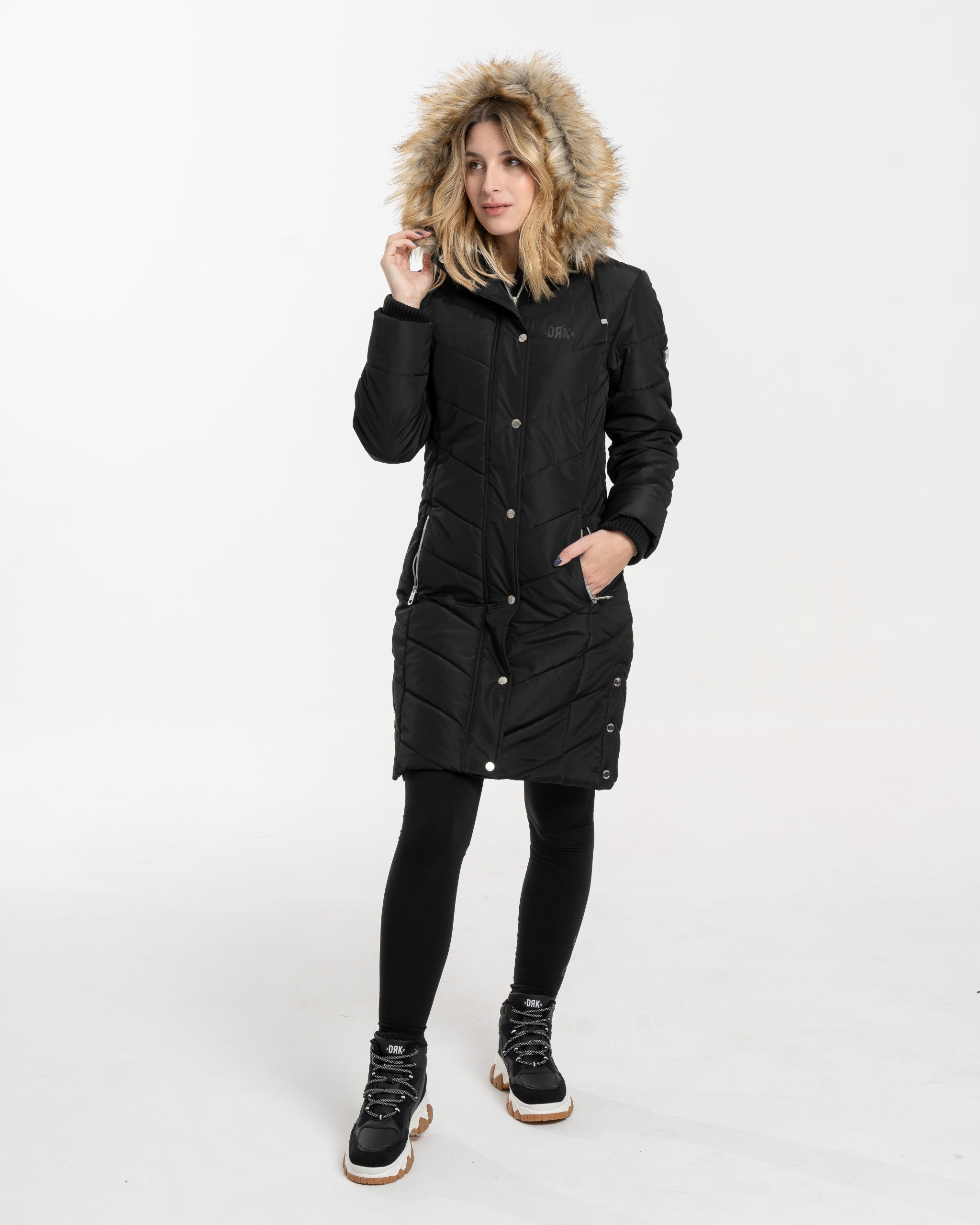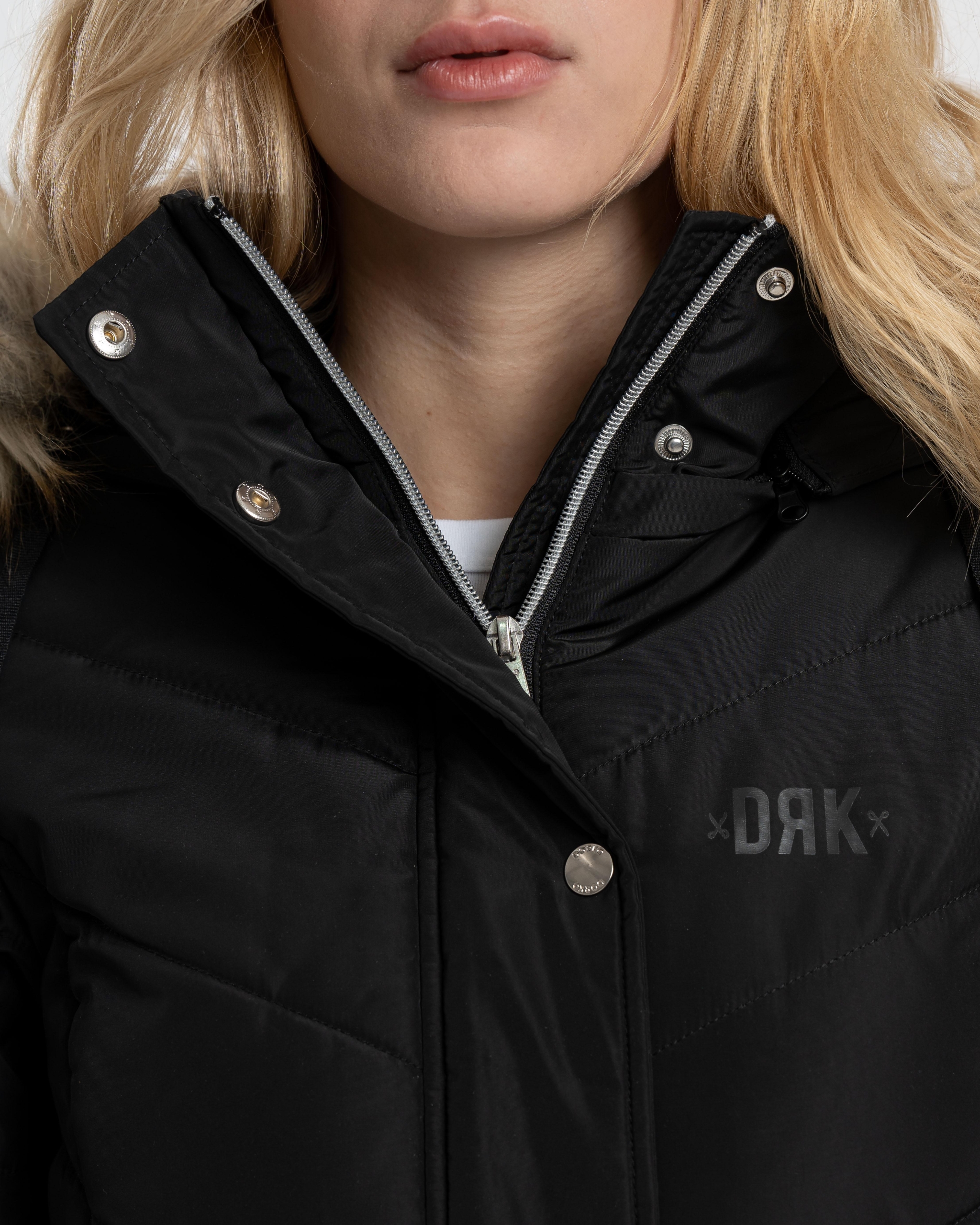 Confecționată din material 100% poliester, jacheta de iarnă pufoasă DRK NENA slim-fit este o alegere elegantă și călduroasă pentru sezonul de iarnă. Logo-ul imprimat cu cauciuc lucios și logo-ul imprimat cu metal de pe brațul superior stâng îi conferă un aspect modern, în timp ce nasturii și fermoarul cu logo ridică și mai mult stilul jachetei. Gluga din blană este detașabilă pentru o purtare versatilă, în timp ce croiala tricotată asigură o purtare confortabilă și protecție suplimentară împotriva frigului.