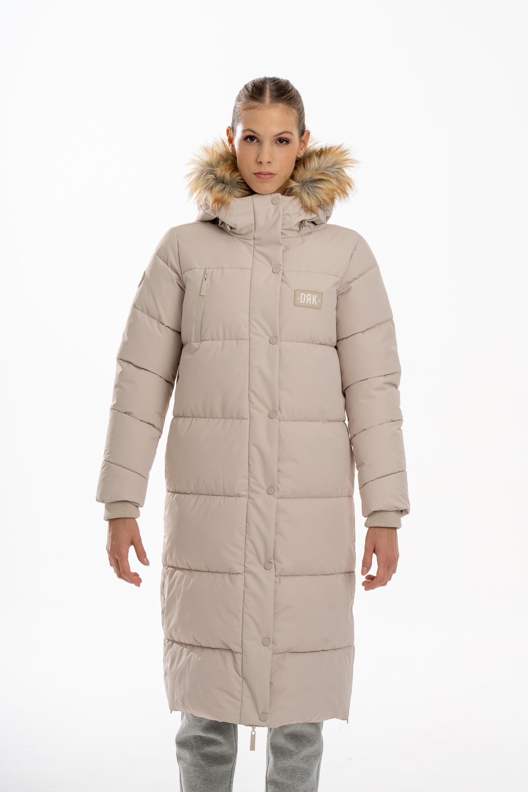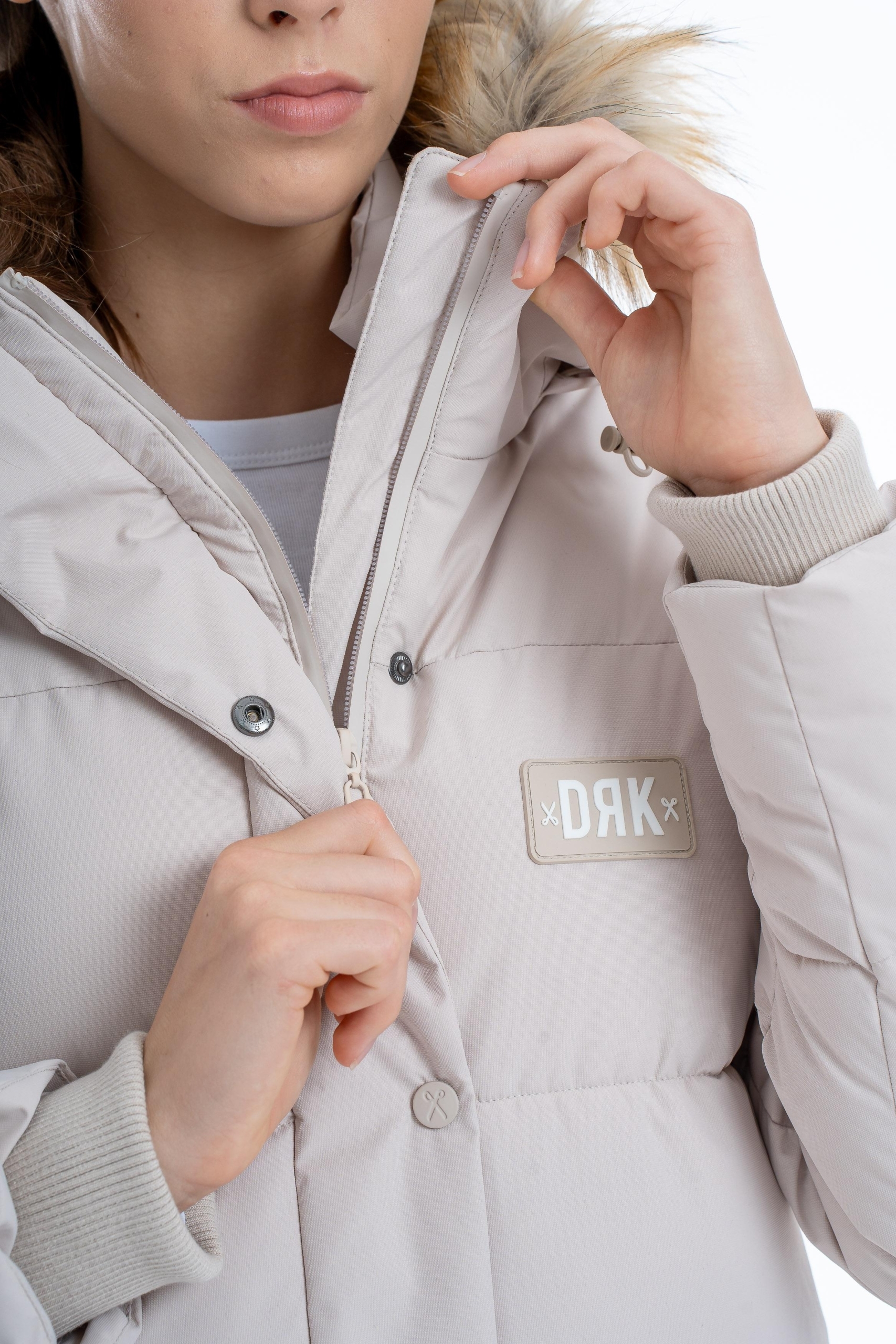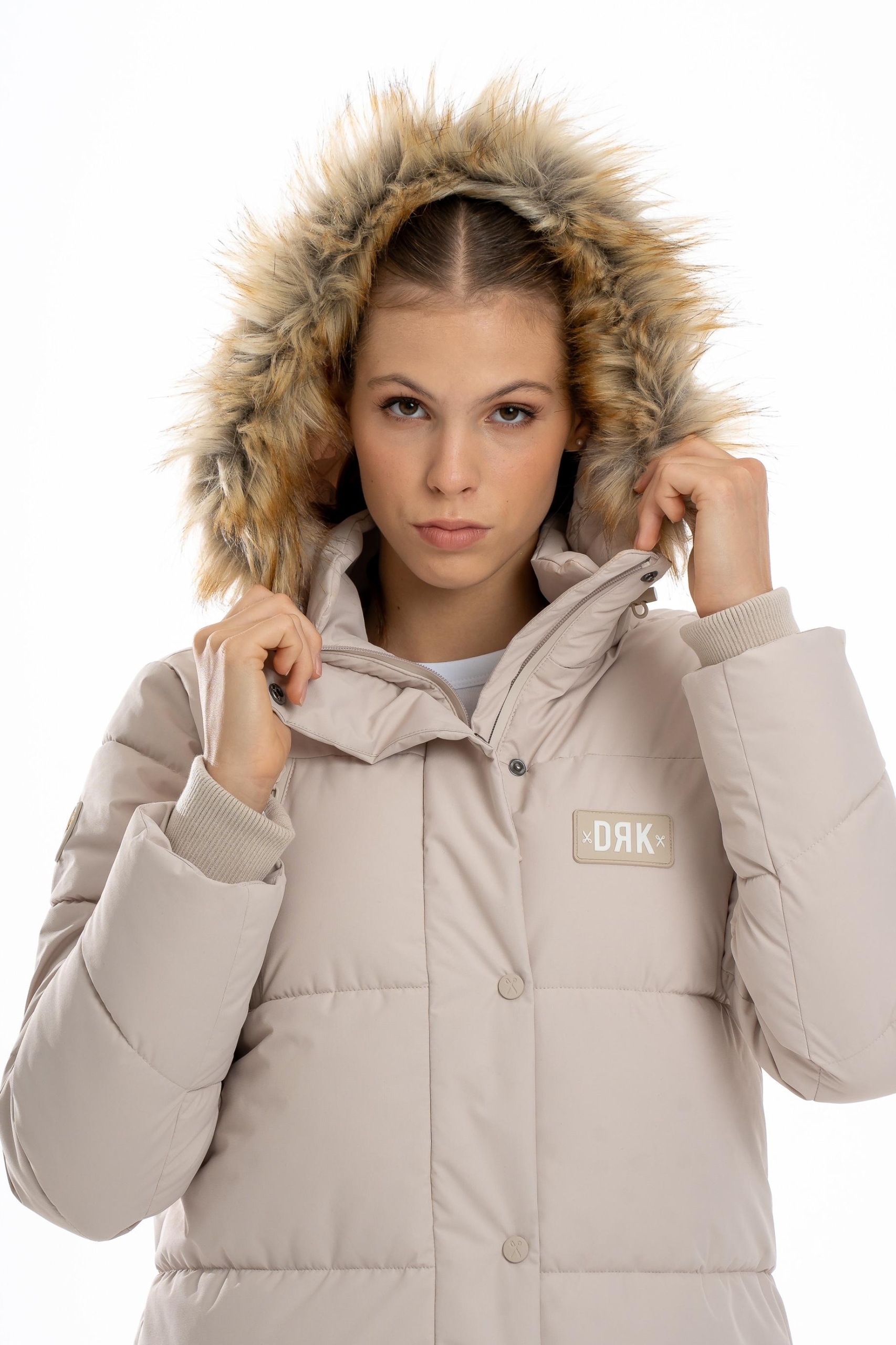 Jacheta DRK POLARIS este concepută pentru sporturile de iarnă și oferă protecție excelentă în zilele reci. Fabricată din 100% poliester, asigură căldură și confort pe orice vreme. Gluga detașabilă cu blană, fermoarul metalic și închiderea cu nasturi tip snap oferă protecție suplimentară împotriva vântului și zăpezii. Logo-ul din cauciuc de pe pieptul stâng și detaliul din cauciuc de pe mâneca dreaptă adaugă un accent modern, iar șnurul de reglare de pe glugă permite o potrivire perfectă.