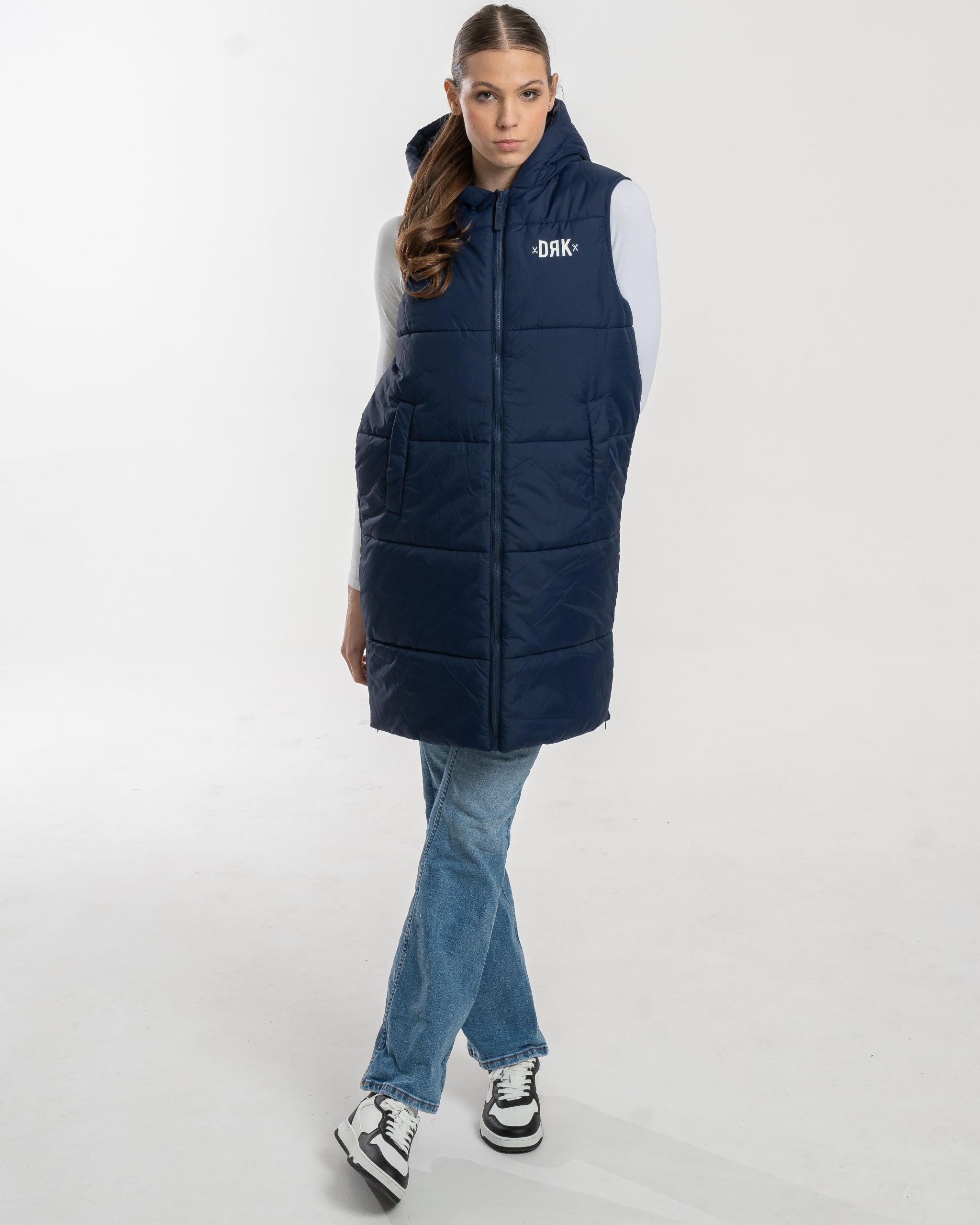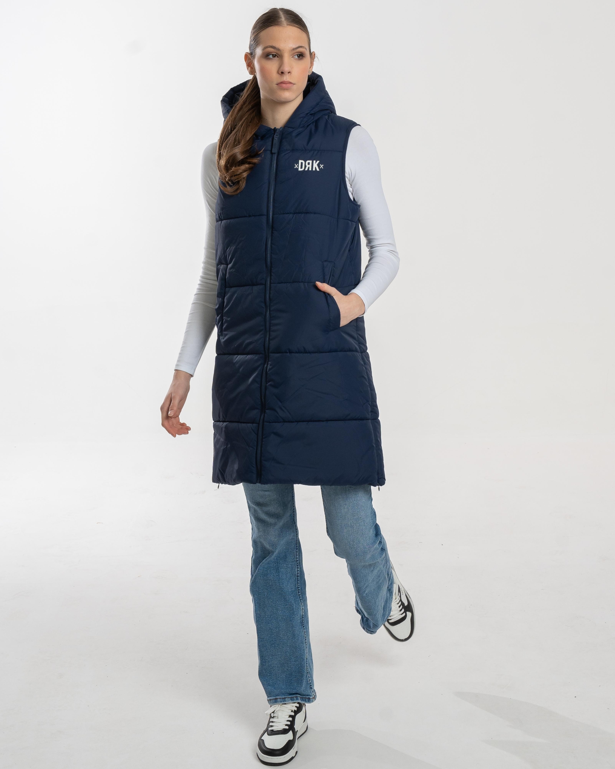 Vesta lungă pentru femei DRK SELINA oferă stil și căldură fără compromisuri. Este partenerul ideal pentru zilele mai reci, combinând un design modern cu funcționalitate practică. Construcția groasă, matlasată, asigură confort termic excelent, iar croiala alungită oferă protecție suplimentară sub talie — perfectă pentru plimbări de toamnă, activități urbane sau purtare în straturi.