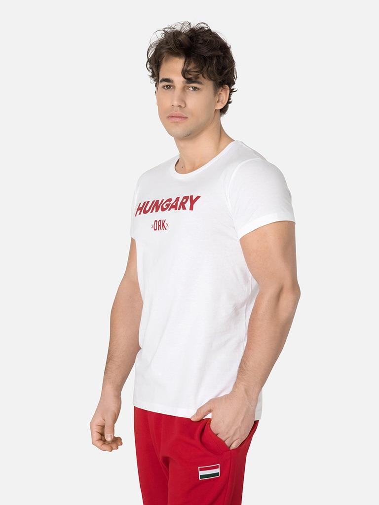 Cămașă de majoretă extrem de confortabilă și elegantă din țesătură 100% bumbac. Dispunând de un gât rotund cu o potrivire clasică. Branding și inscripții HUNGARY pe față, creastă elegantă la gât. Disponibil și în roșu și alb, acest tricou este un adevărat jolly joker în garderoba oricărui suporter hotărât.