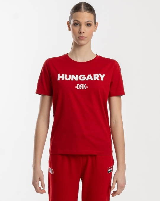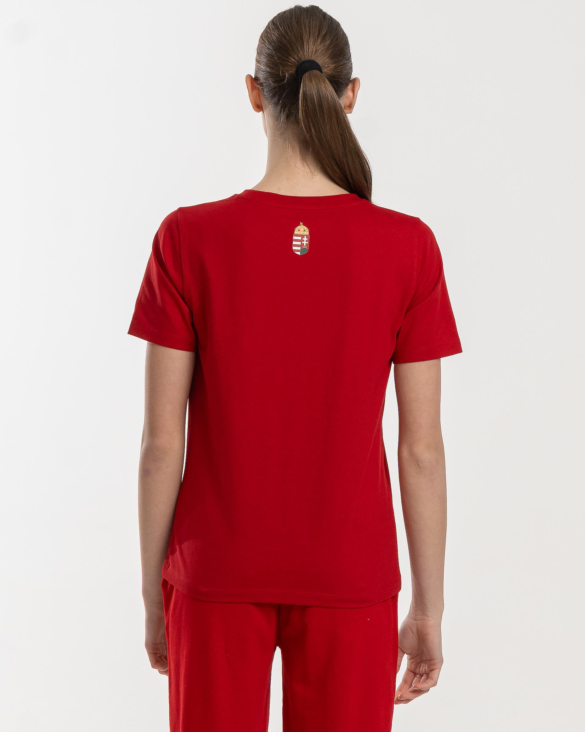 Cămașă de majoretă extrem de confortabilă și elegantă din țesătură 100% bumbac. Dispunând de un gât rotund cu o potrivire clasică. Branding și inscripții HUNGARY pe față, creastă elegantă la gât. Disponibil și în roșu și alb, acest tricou este un adevărat jolly joker în garderoba oricărui suporter hotărât.