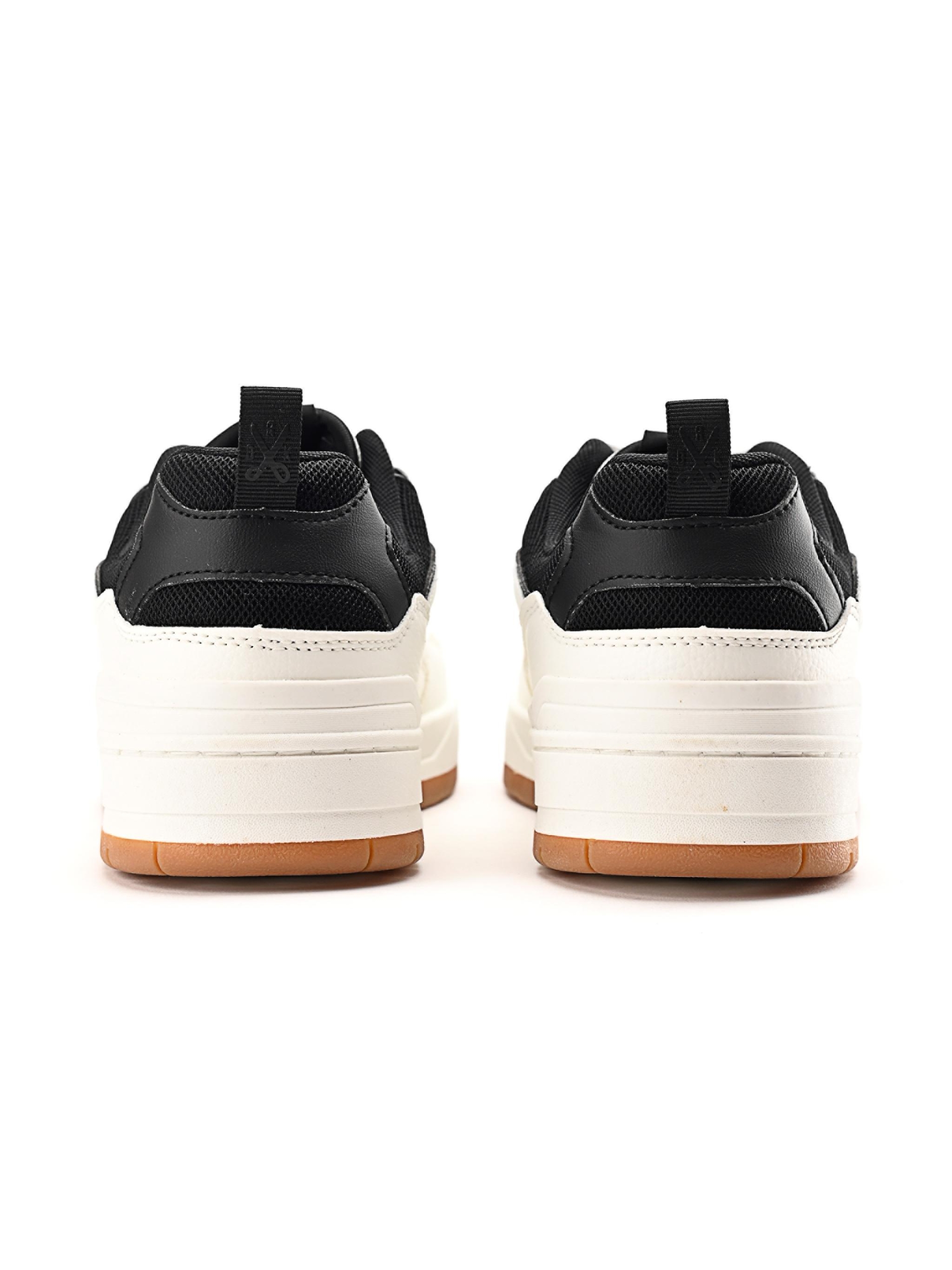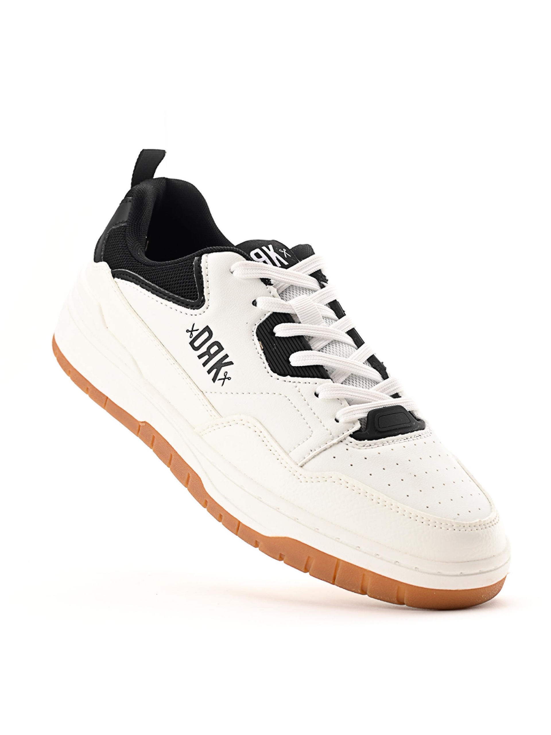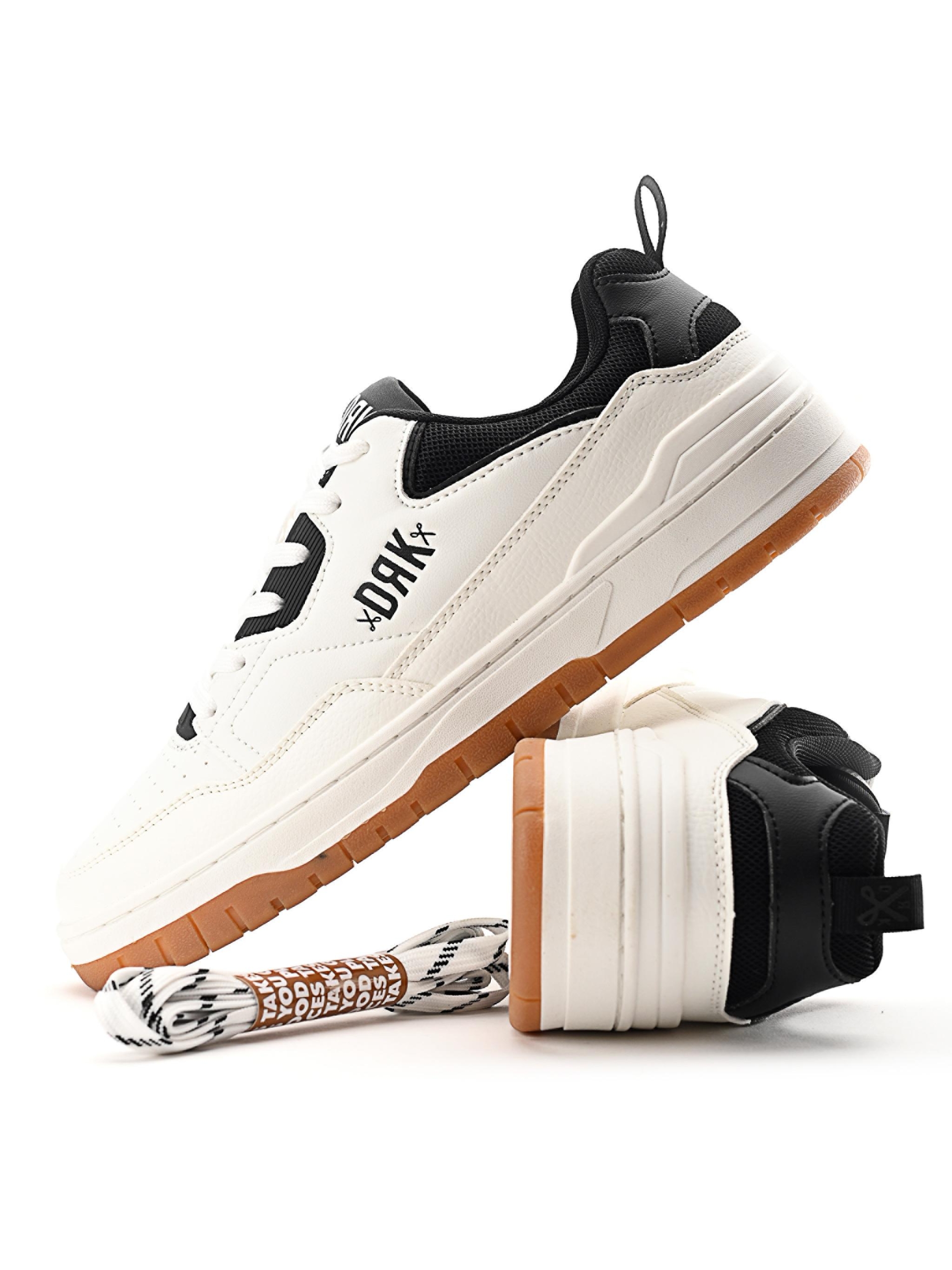 TRACE aduce înapoi lumea pantofilor sport clasici cu detalii moderne. Tupeul său alb curat cu efect de piele este completat de inserții negre contrastante și de o talpă robustă din cauciuc care oferă atât stil, cât și confort. Combinația de țesătură cu efect de piele și material textil asigură durabilitate pentru uzura zilnică. Logo-ul DRK de pe partea laterală adaugă un aspect caracteristic, în timp ce șireturile cu model interschimbabil permit personalizarea.